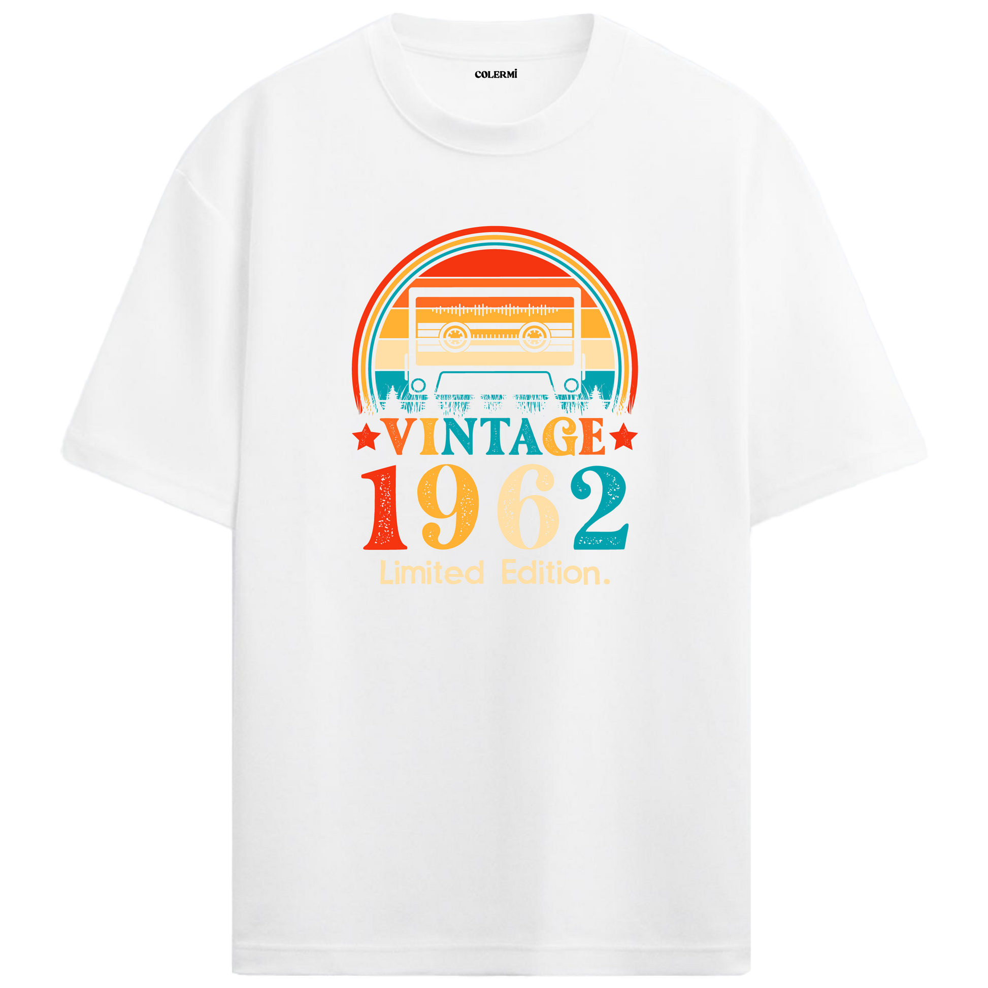This design captures the musical atmosphere of 1962, with a retro cassette and nostalgic color transitions that reflect the spirit of the past. Warm tones and vintage typography offer a timeless style for classic music lovers. The oversized fit ensures comfort, while the 100% cotton fabric provides all-day wearability.