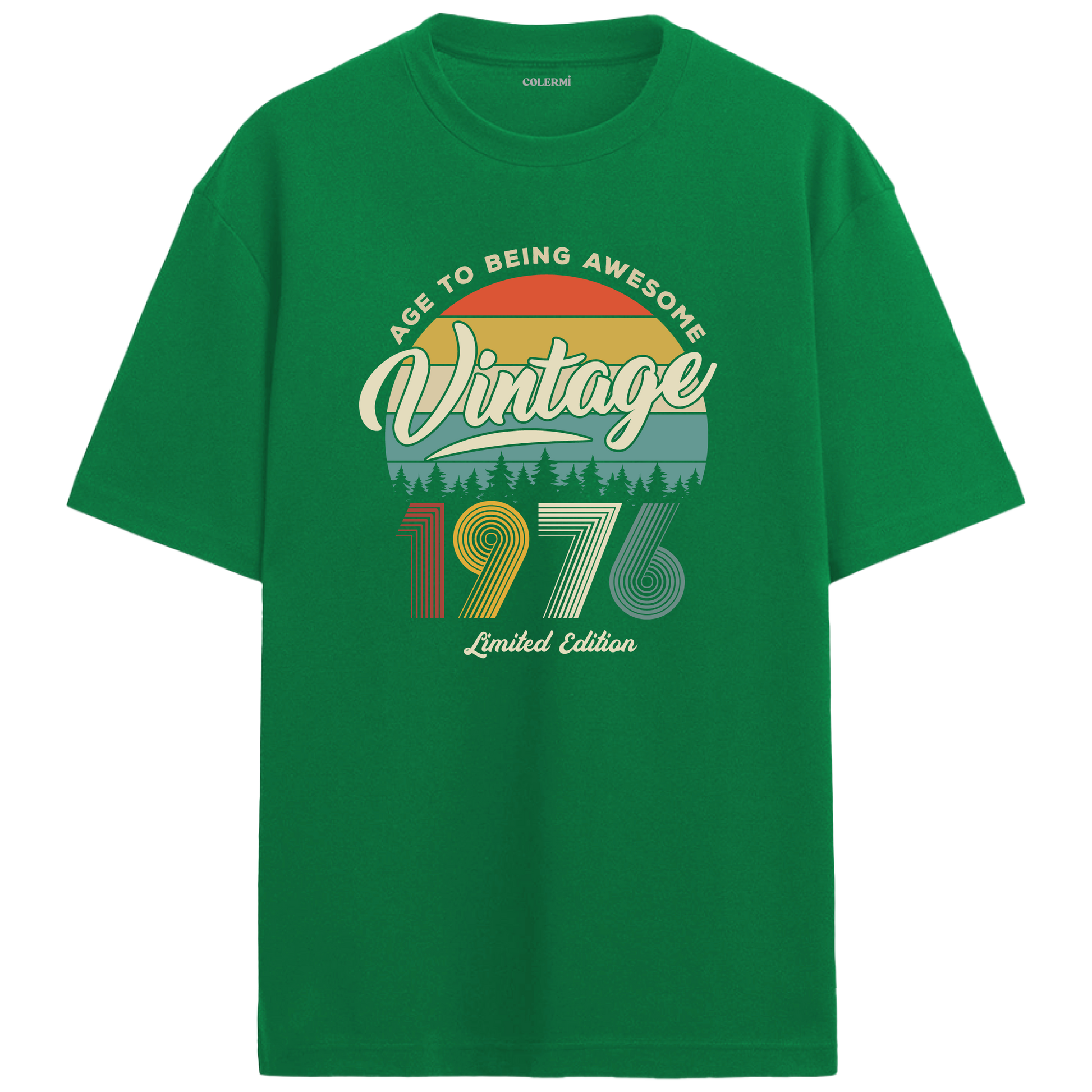 This vintage t-shirt reflects the unique spirit of 1976 with a modern touch, blending the aesthetic of the past with today’s comfort. Featuring warm sunset colors, retro typography, and a nature-themed background design, it creates a one-of-a-kind atmosphere for nostalgia lovers. The oversized fit ensures comfort, while the 100% cotton fabric provides all-day wearability.