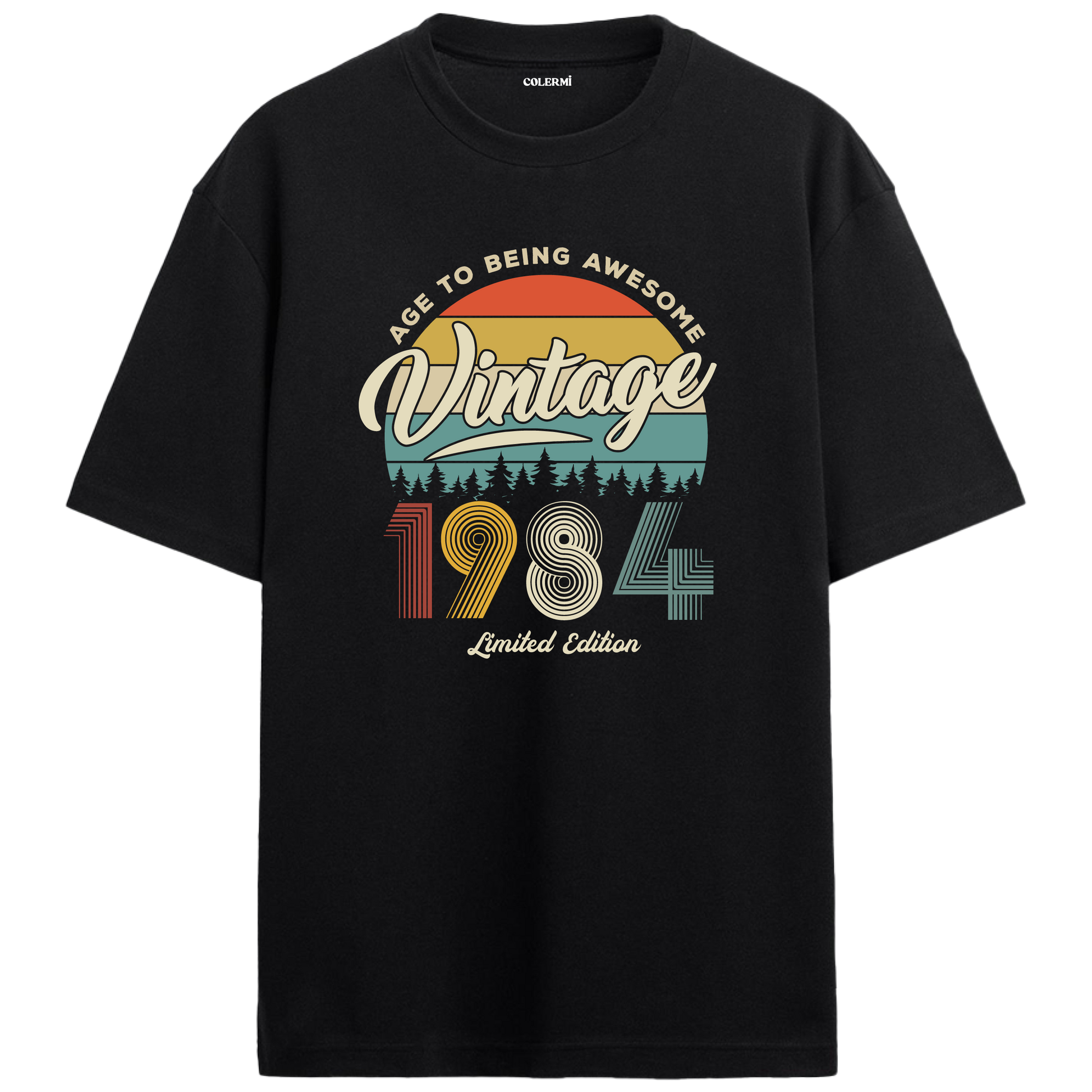 1984 Nostalgia Oversized T-Shirt - Retro Sunset Nature Silhouette Design