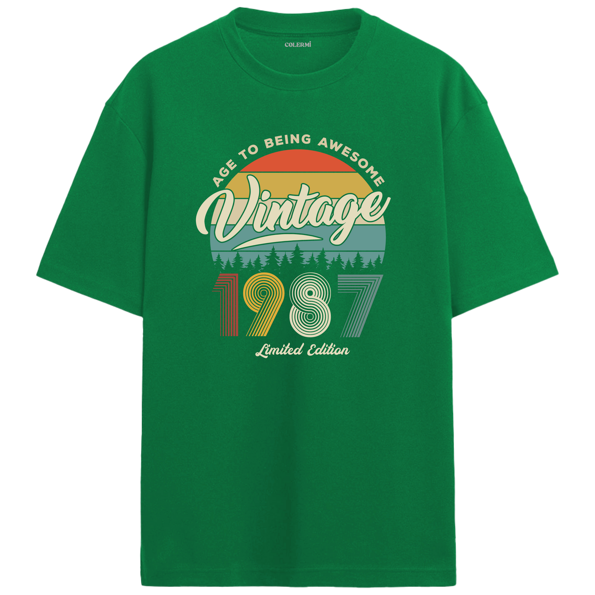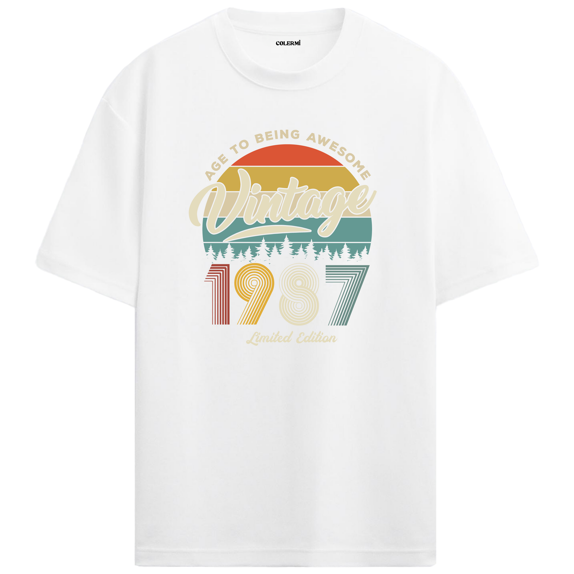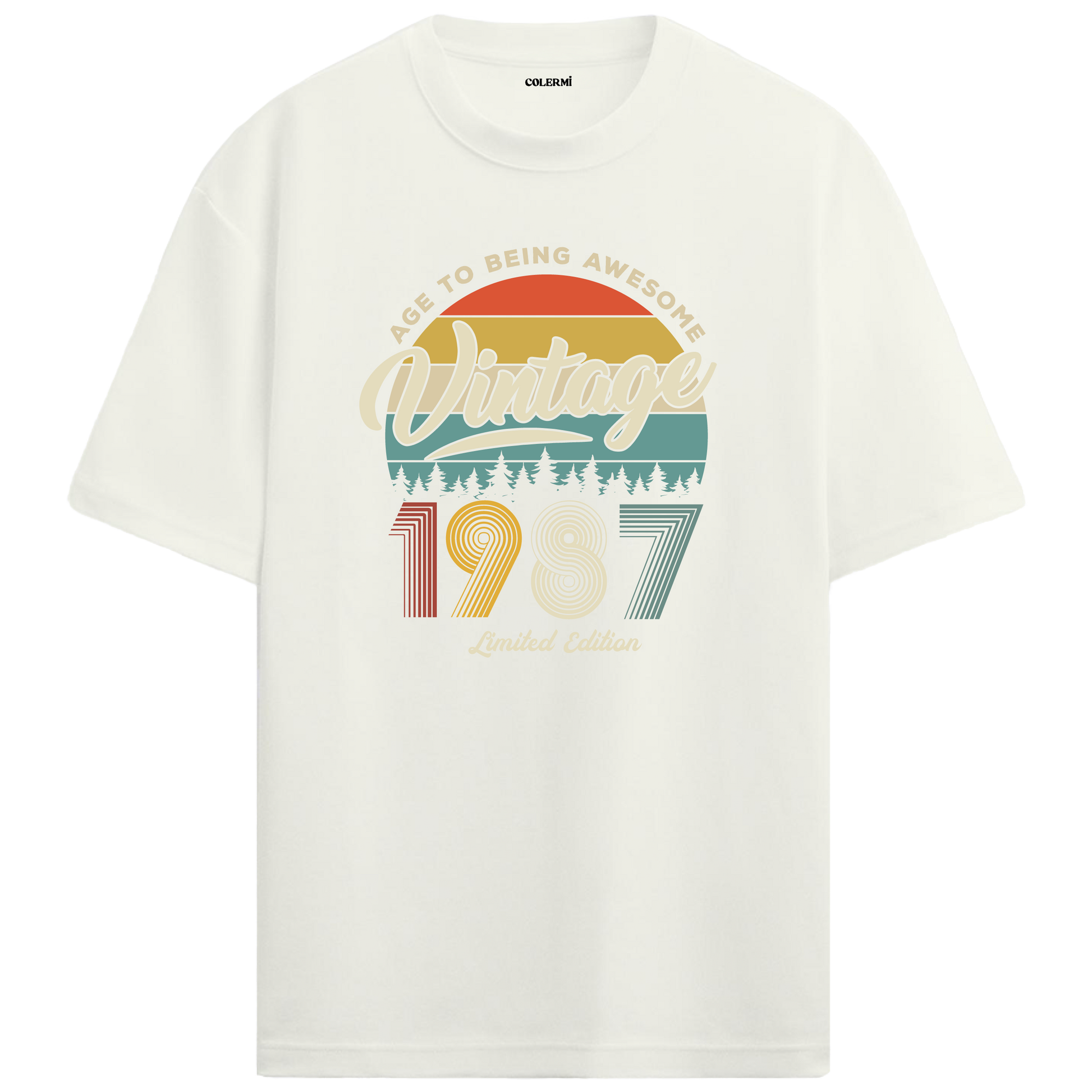 Carry the iconic vibe of 1987 with this vintage-inspired t-shirt. Featuring retro typography and a nature-inspired color palette, it reflects the serene atmosphere of the past with sunset tones and a pine tree silhouette. The oversized cut and 100% cotton fabric provide a comfortable, all-day wearing experience.