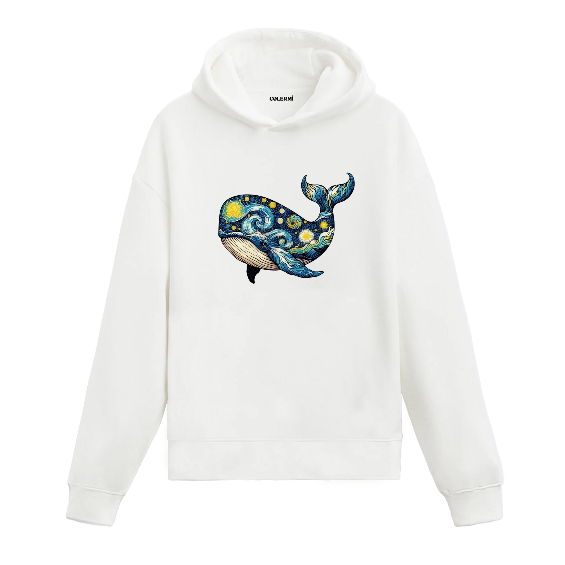 Balina Tasarımlı Sanatsal Baskılı Hoodie