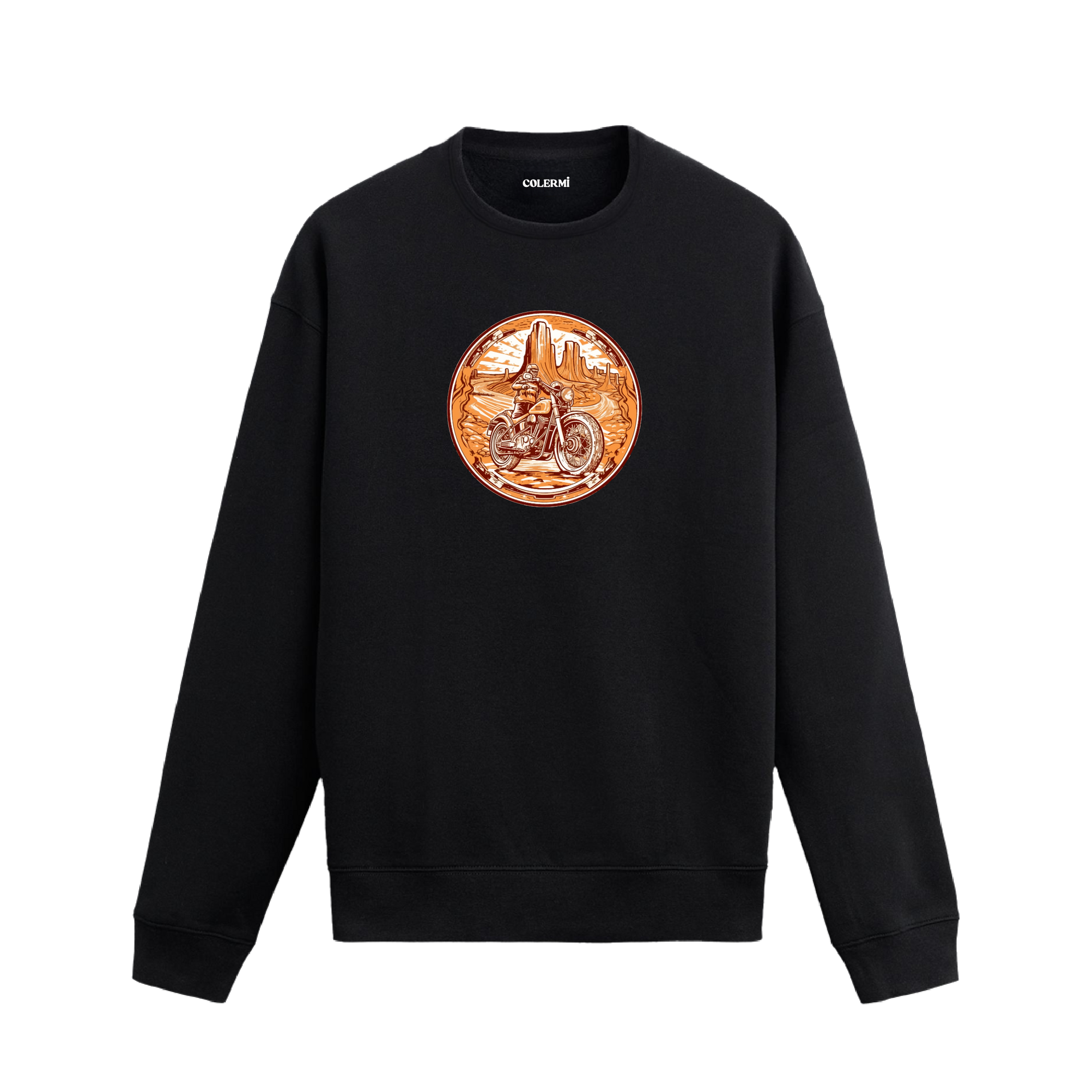 Göğüs bölümünde kanyon manzarası içinde ilerleyen motosiklet baskısı yer alır. Dengeli kalıbı ve tok dokusuyla sakin ama kararlı bir kullanım hissi sunar. Detayıyla hikâye kuran, temposunu yükseltmeyen bir parçadır.