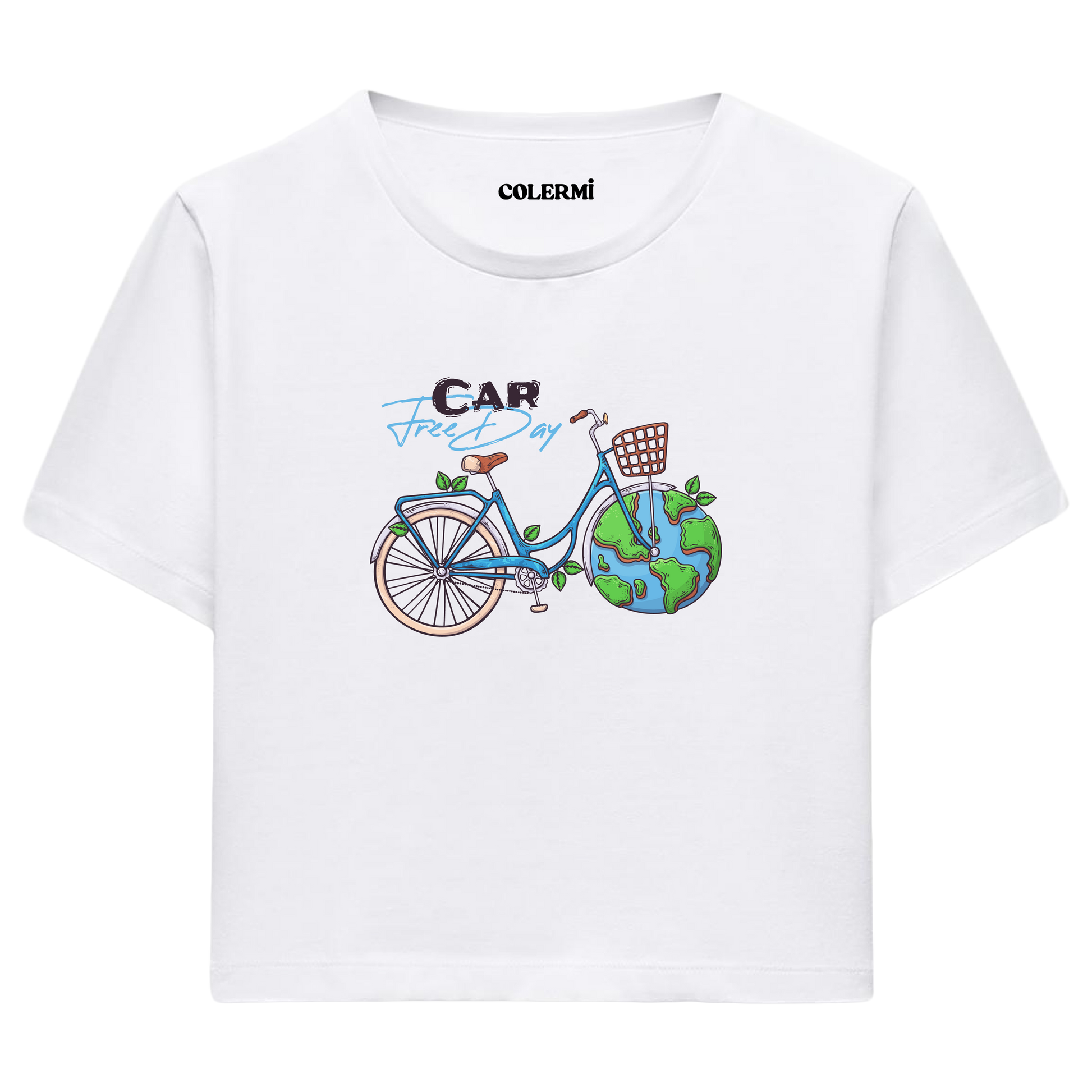 Car Free Day Bisiklet Temalı Grafik Crop T-Shirt