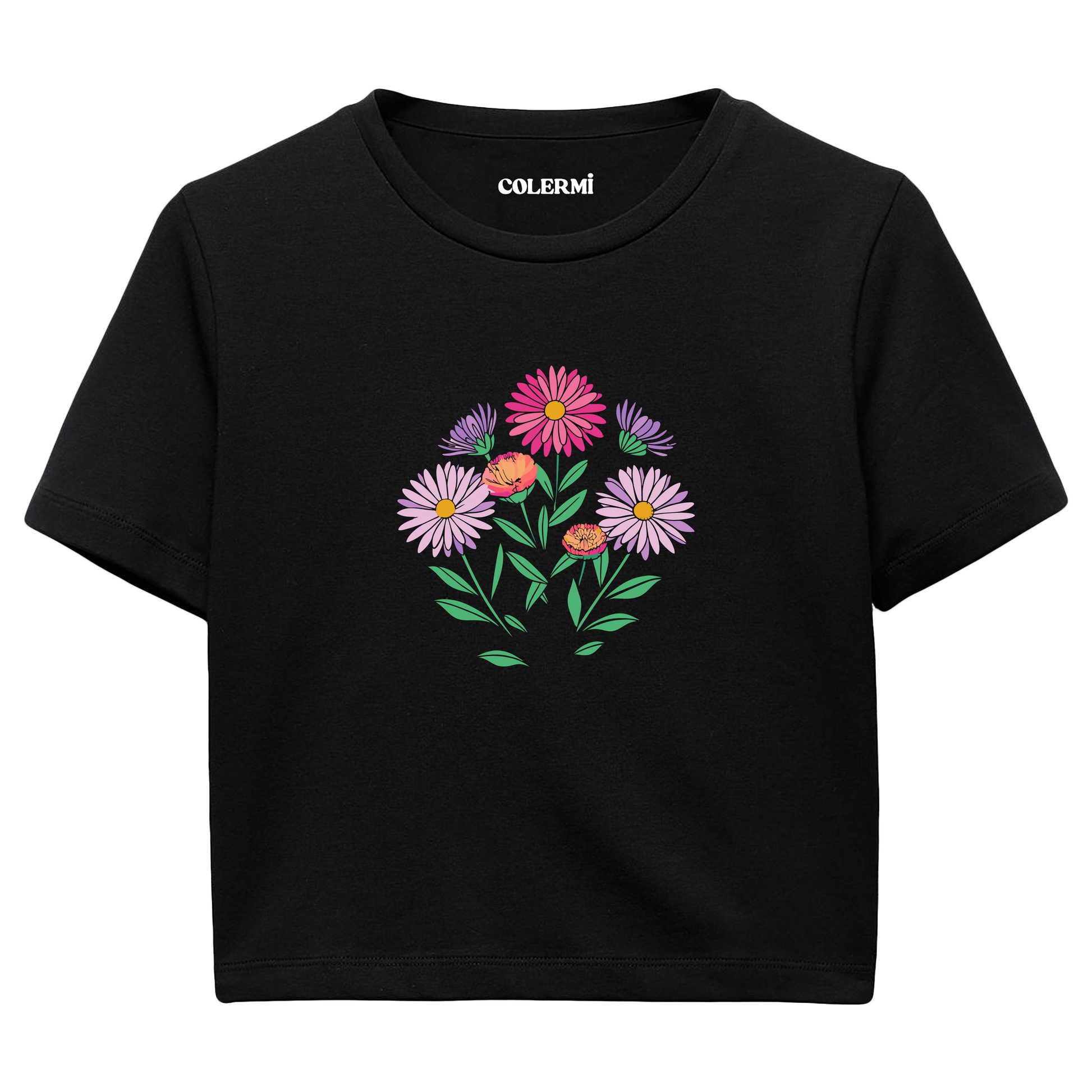 Colermi Kadın Crop Top T-Shirt - Renkli Çiçekler