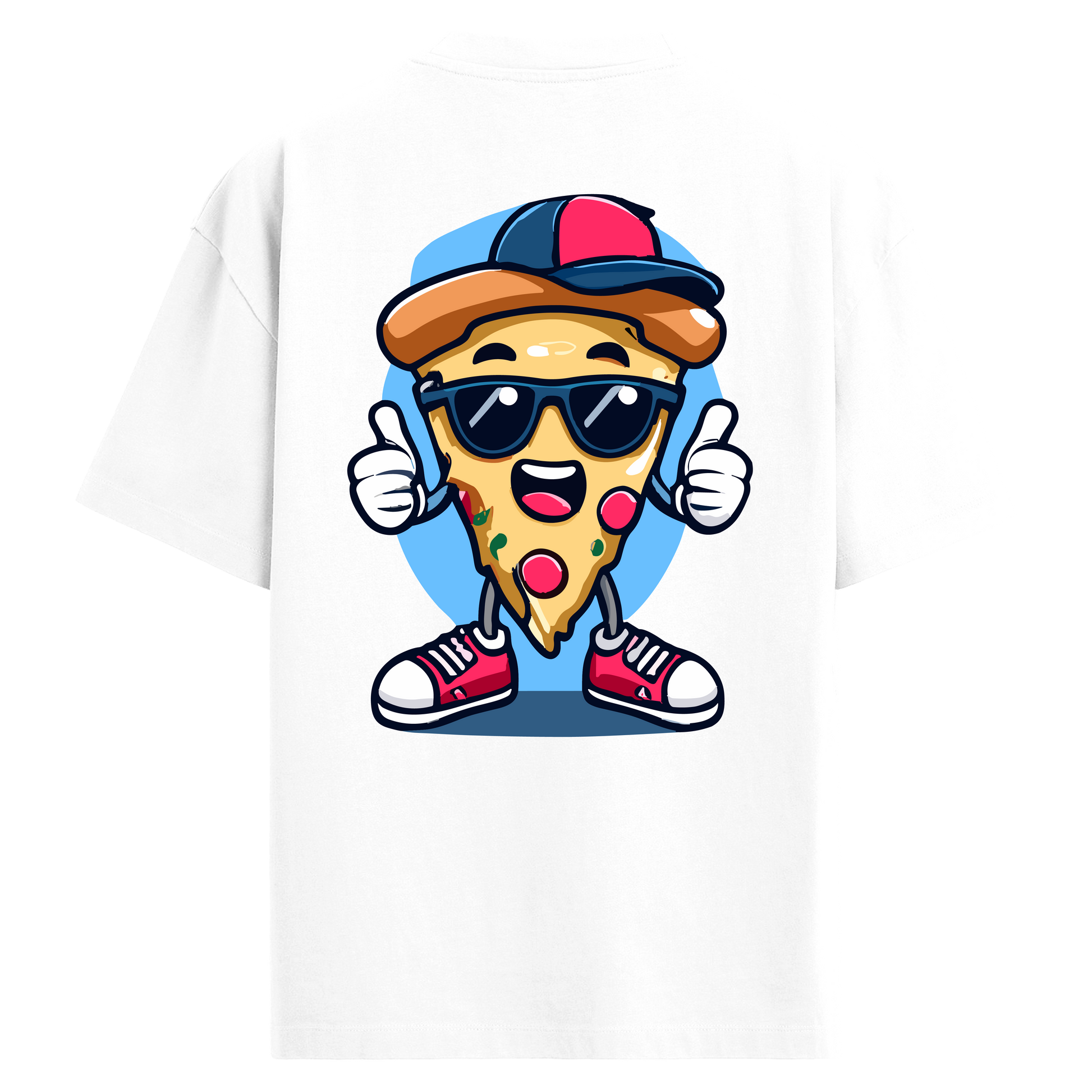 Cool Slice – Stil Sahibi Pizza Karakter Sırt Baskılı Oversize T-Shirt