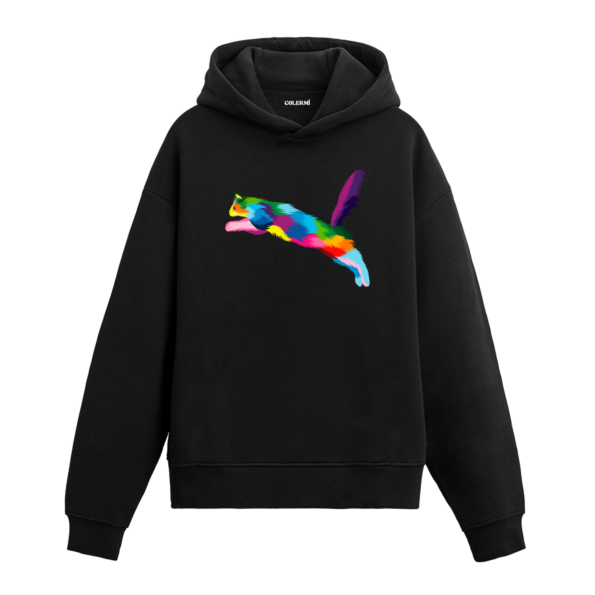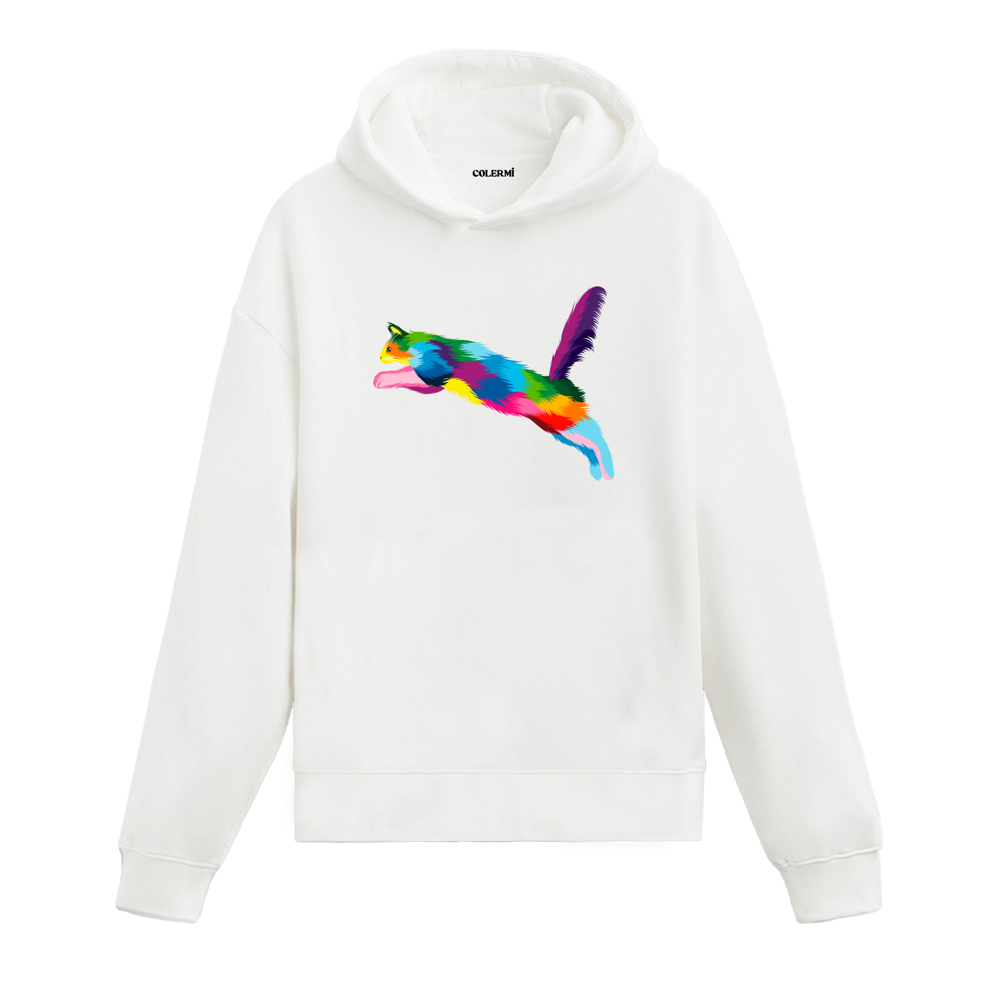 Luna – Zıplayan Renkli Kedi Baskılı Hoodie