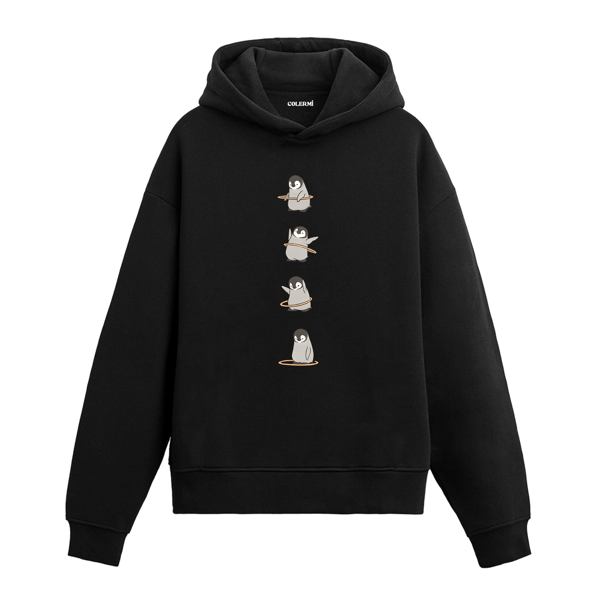 Göğüs bölümünde ardışık biçimde konumlanan minik penguen tasarımı yer alır. Tekrarlayan duruşlar, sade çizim diliyle birleşerek tasarıma akıcı ve dengeli bir görünüm kazandırır.