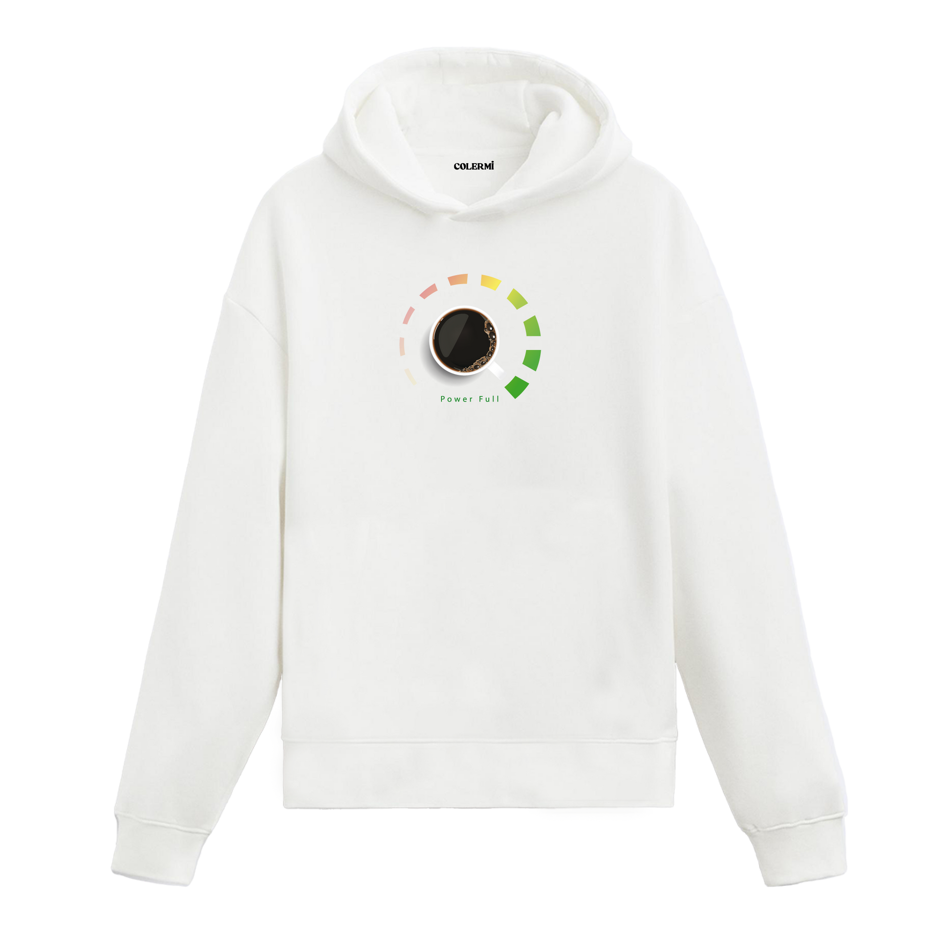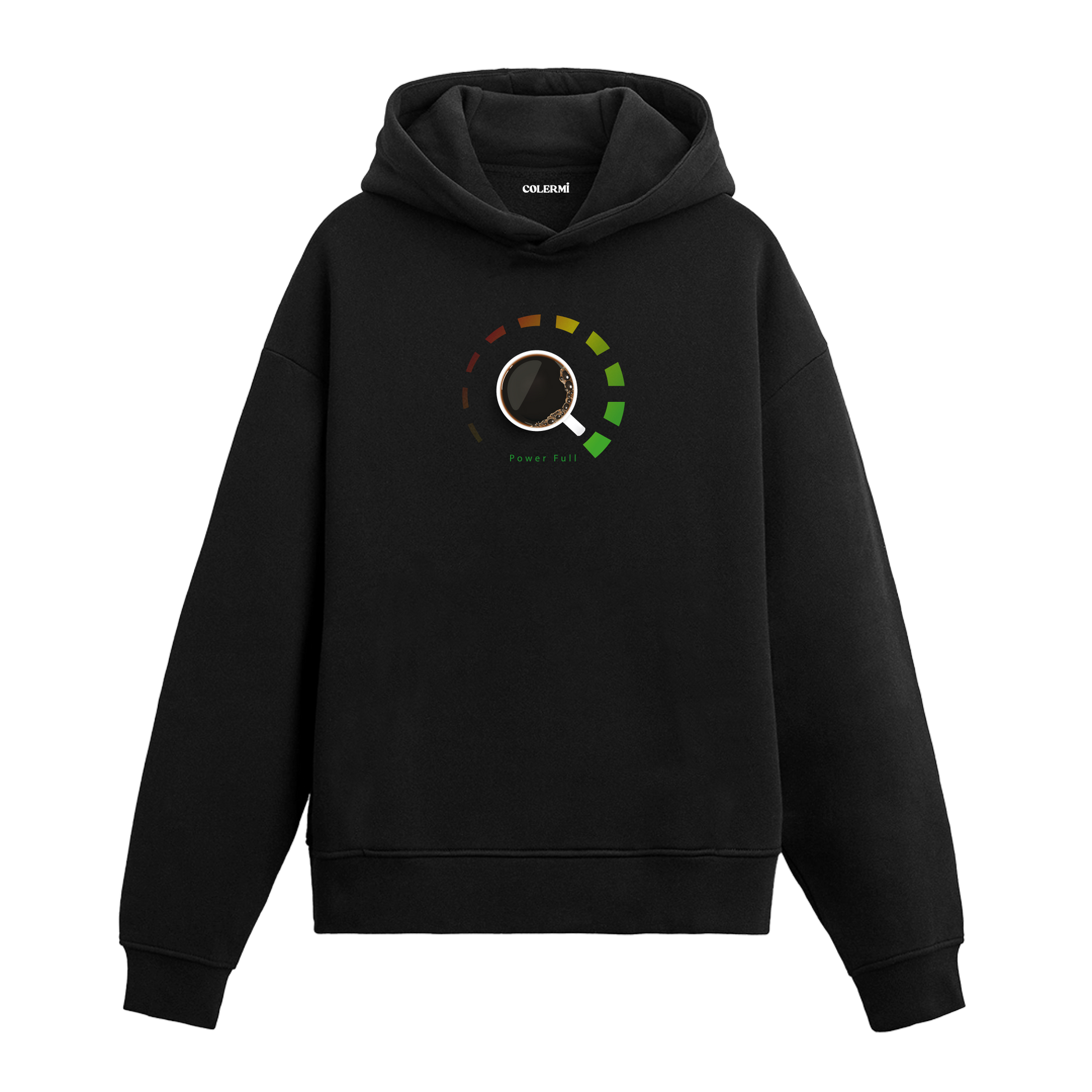 Göğüs bölümünde kahve fincanı ve doluluk skalasını bir araya getiren bir baskı yer alır. Dengeli kalıbı ve tok dokusuyla günlük kullanımda sakin bir konfor sunar. Mizahı düşük sesle yapan, detayla anlam kazanan bir parçadır.