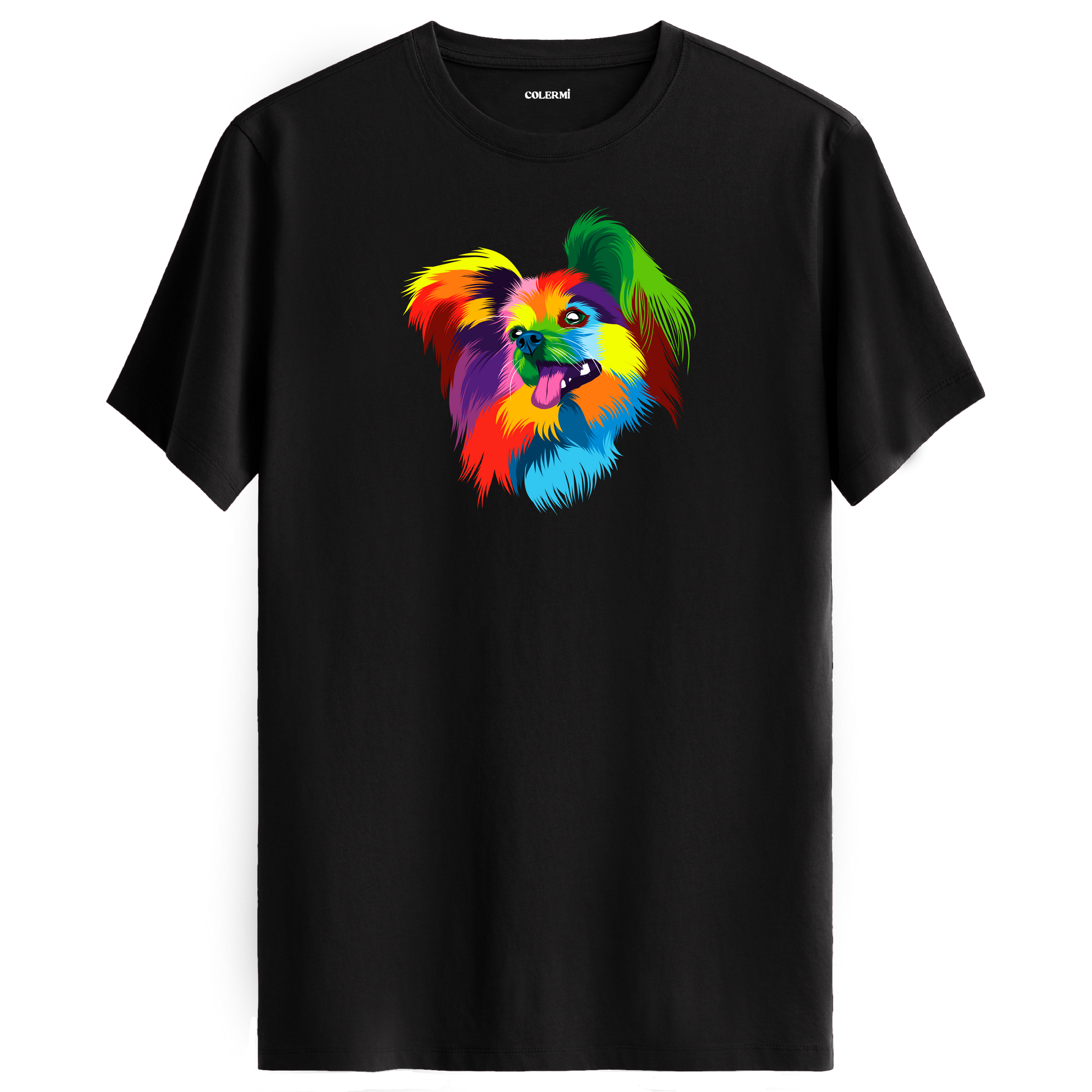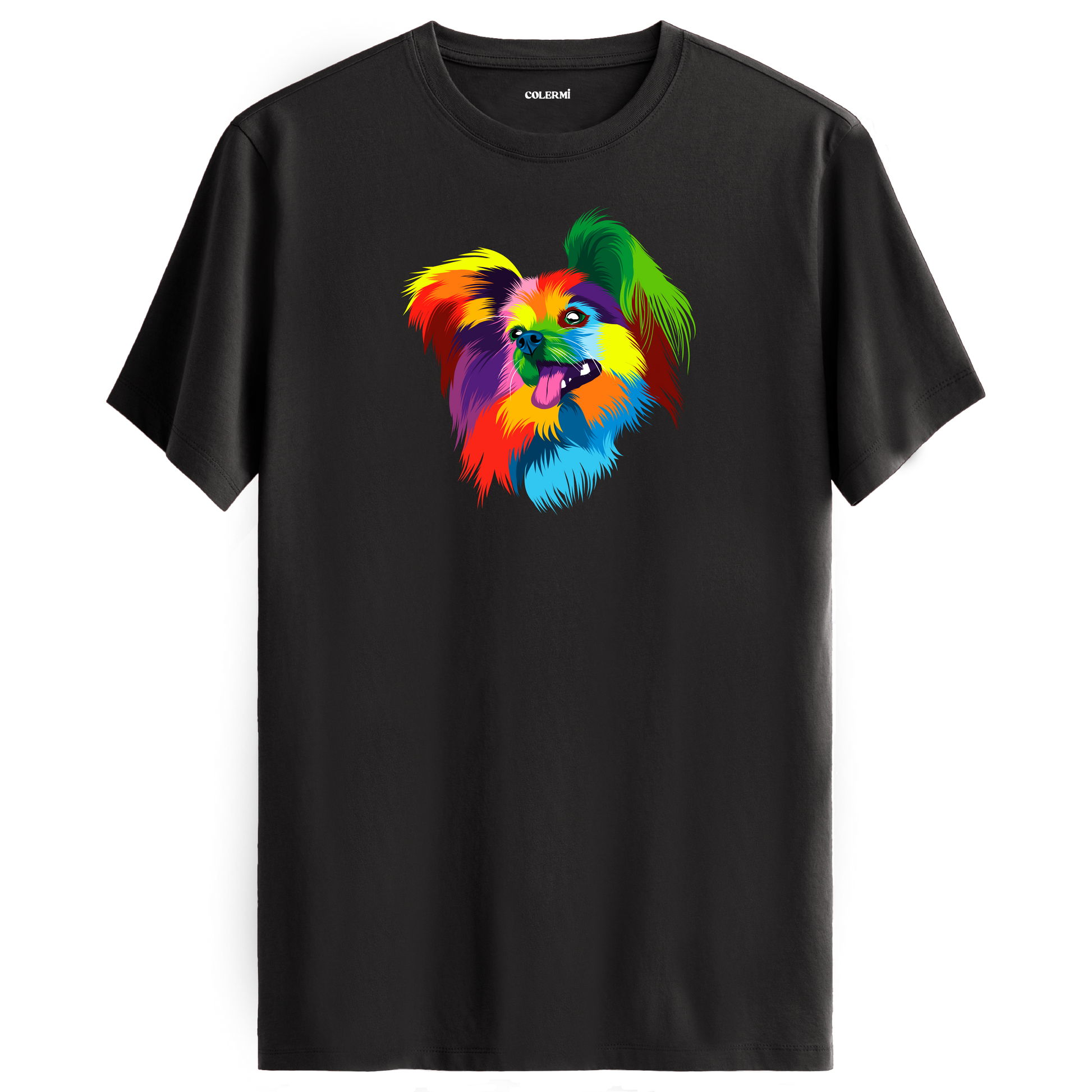 Renkli Milo Papillon Köpek Baskılı Tişört