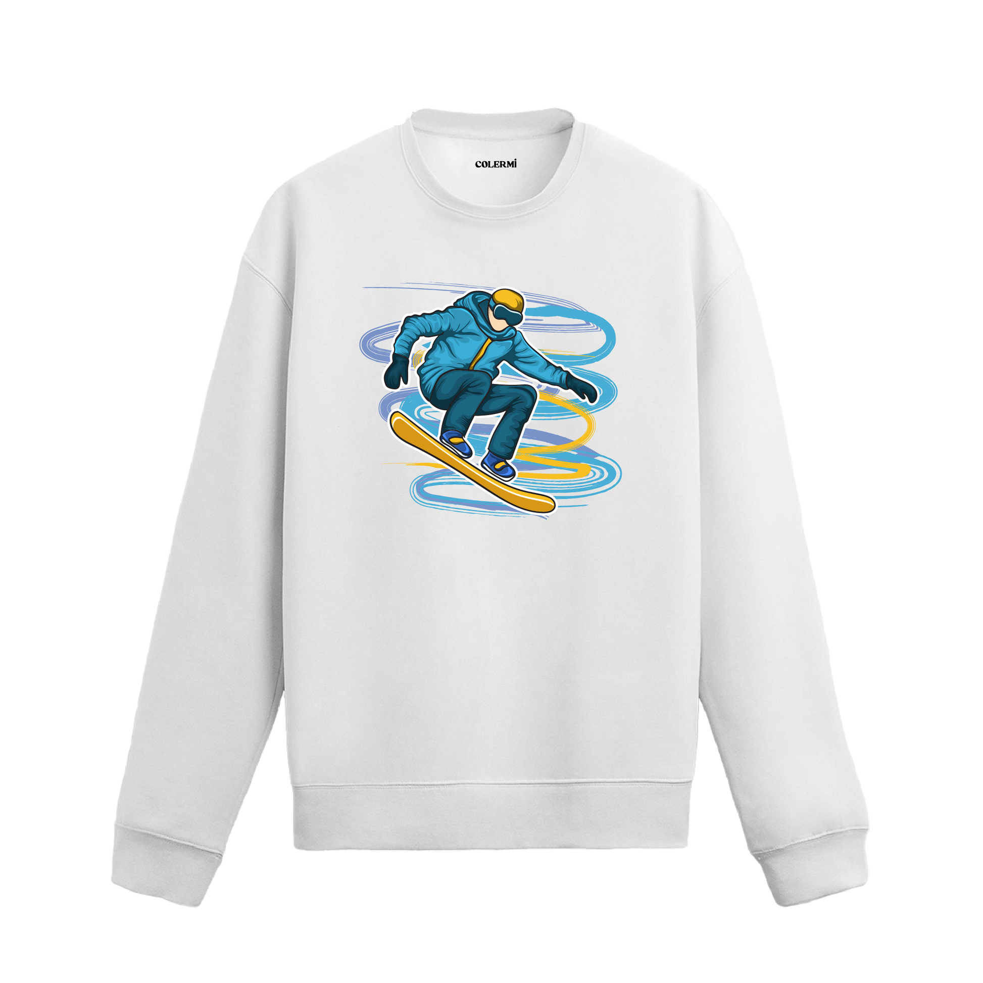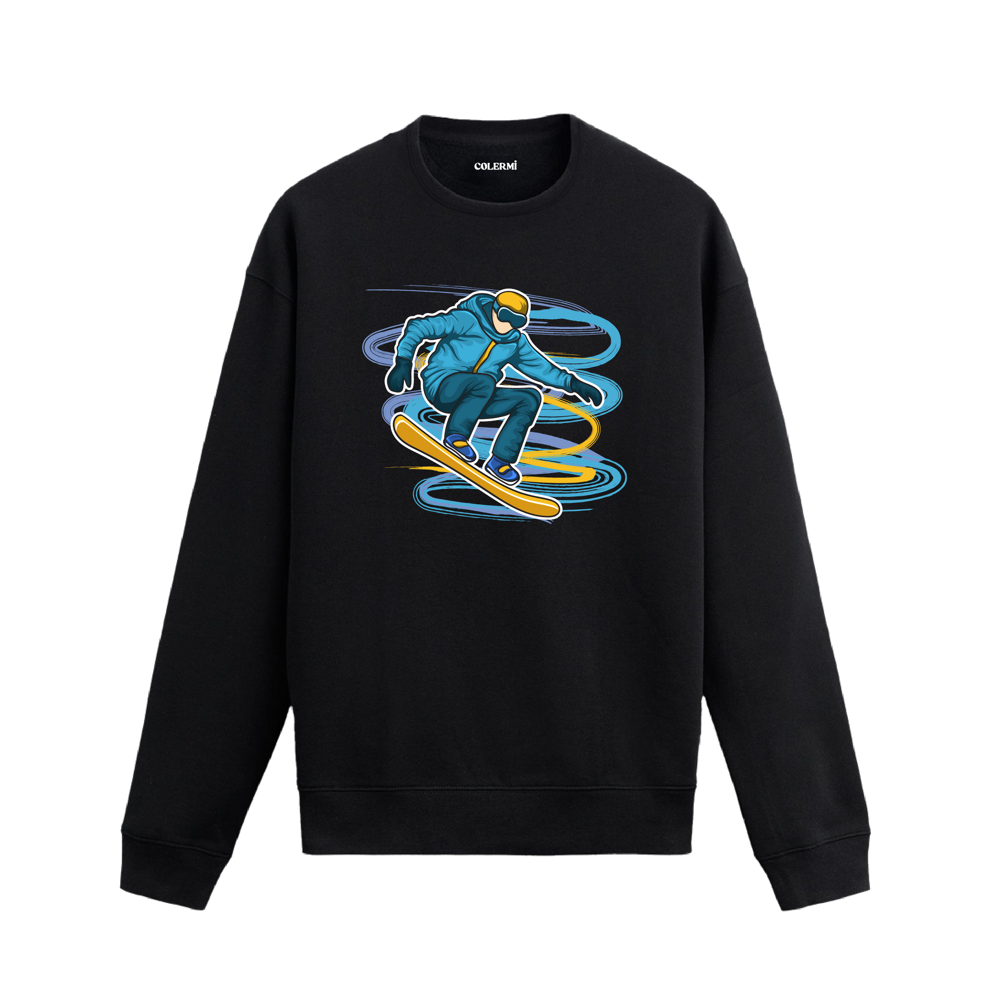 Göğüs bölümünde dönüş çizgileri arasında havalanan snowboard baskısı yer alır. Dengeli kalıbı ve tok dokusuyla hareketi kısıtlamayan bir yapı sunar. Hızı değil kontrolü öne çıkaran bir karakter taşır.