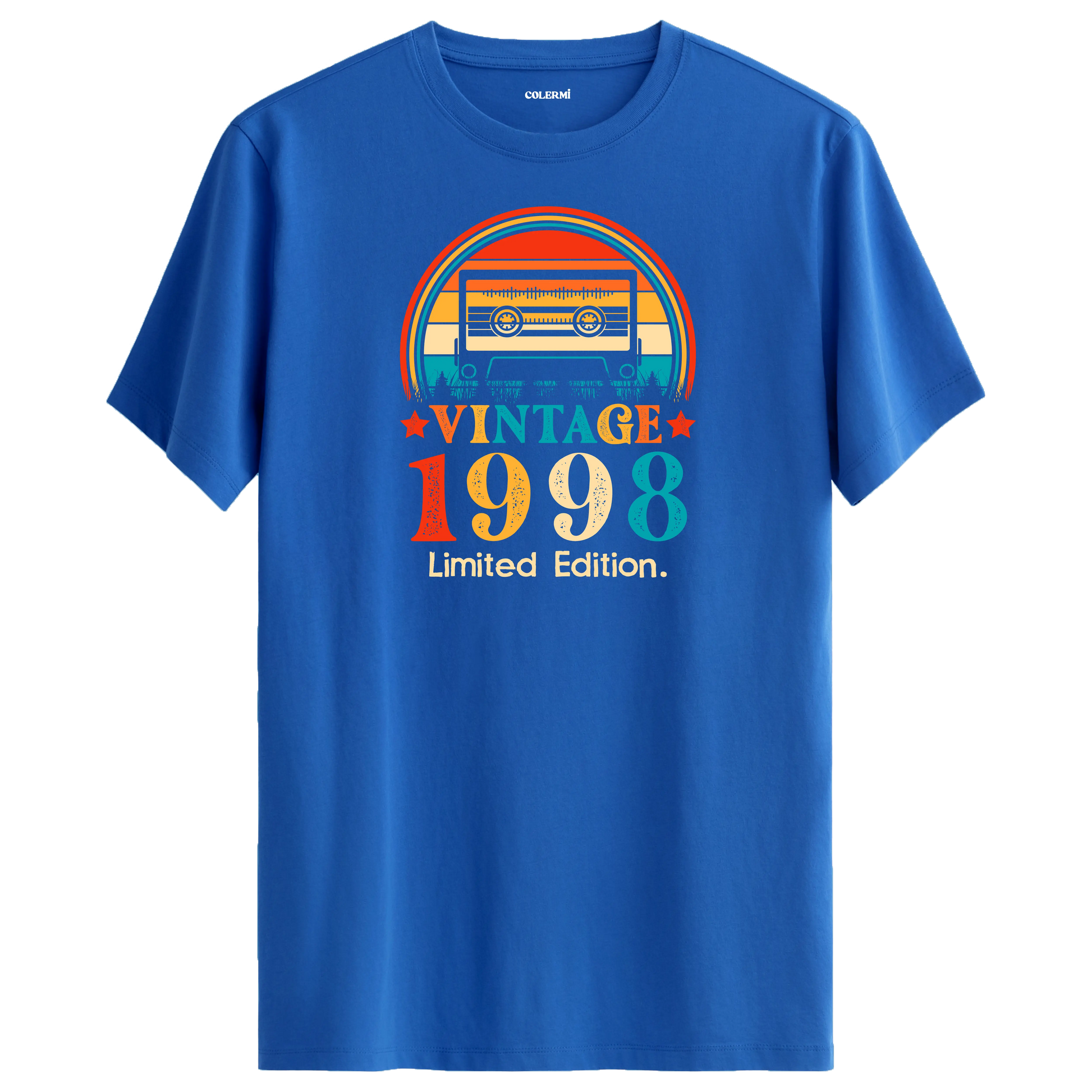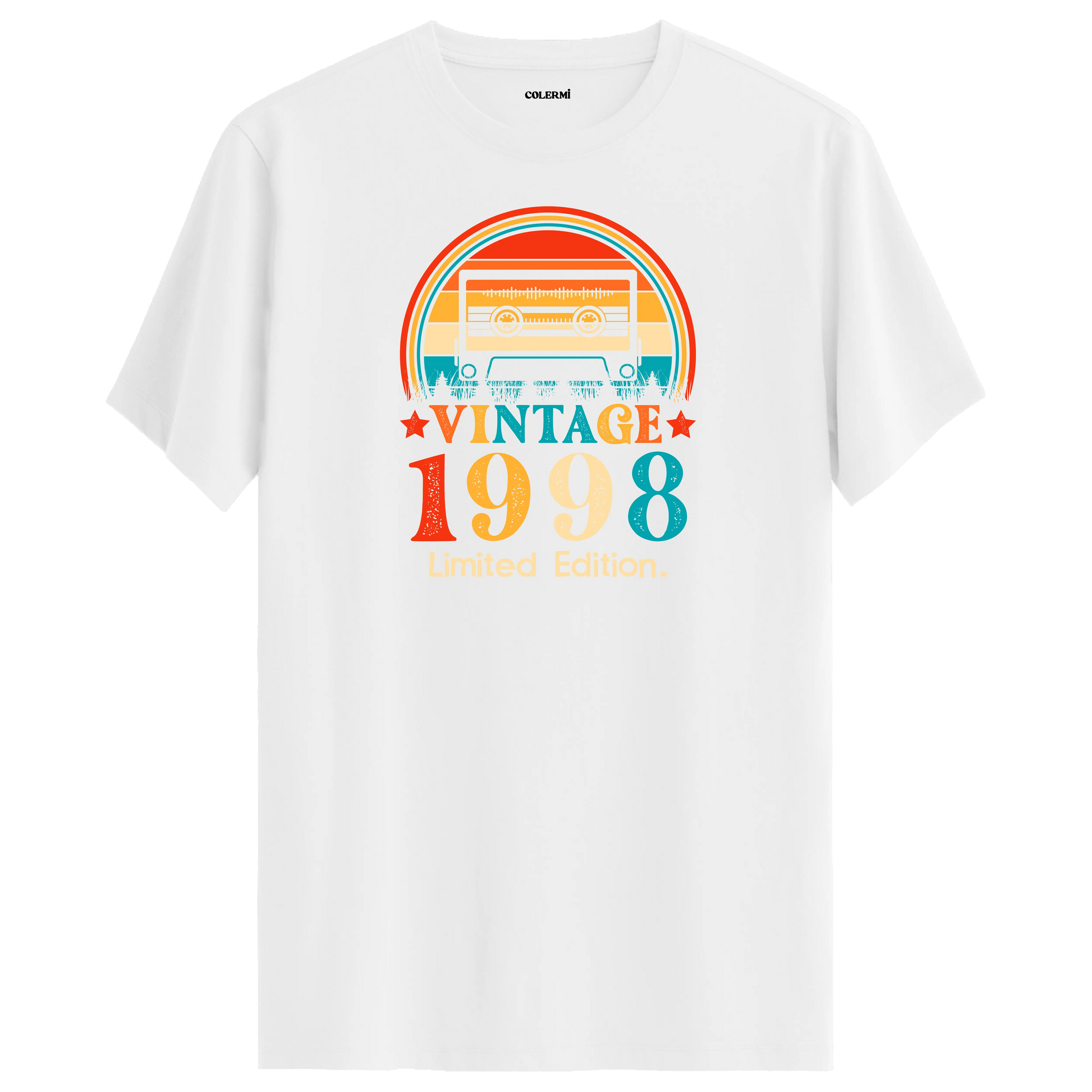 Siyah vintage t-shirt, 1998 kaset çalar tasarımıyla retro tişört severler için nostaljik bir seçim.
