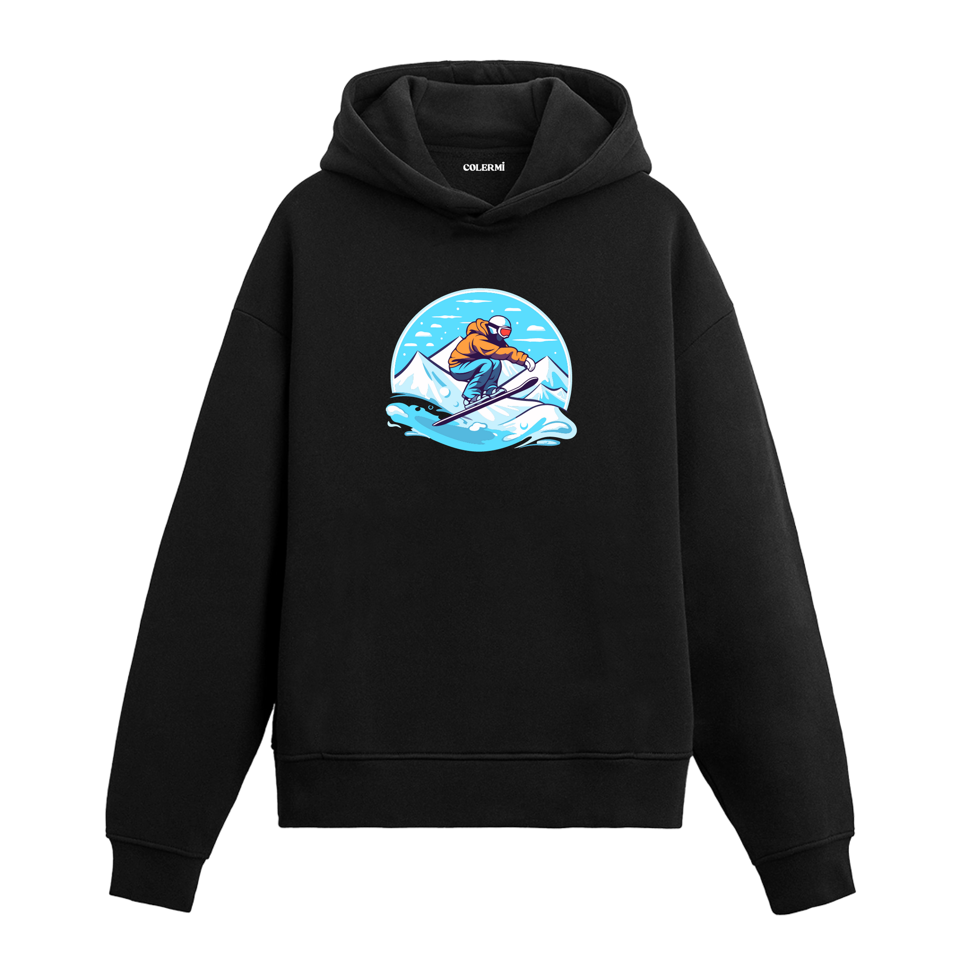 Göğüs bölümünde dağlar arasında havalanan bir snowboard baskısı yer alır. Dengeli kalıbı ve tok dokusuyla hareket özgürlüğü sunan bir yapıdadır. Enerjisi yüksek ama göze sokulmayan bir parça olarak konumlanır.